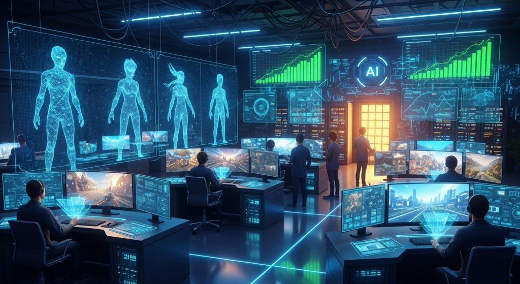 This transformation is driven by the automation of traditionally labor-intensive tasks such as automated dialogue generation, environment rendering, and software quality assurance.